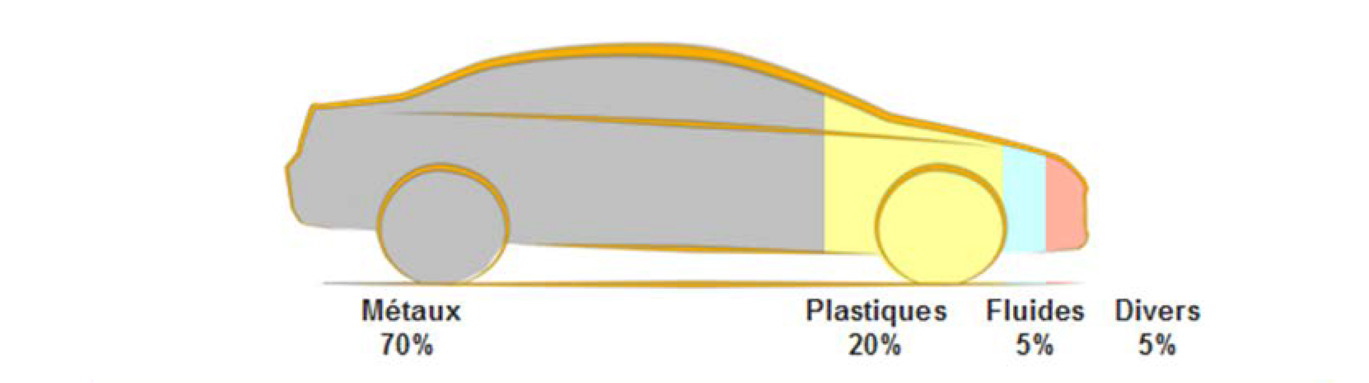Aujourd’hui, sur une voiture citadine on retrouve entre 150 à 200 kg de plastiques, soit environ 20 % en masse de sa composition. A l’avenir, jusqu’à 90 % de ce plastique pourrait contenir du biosourcé, entièrement ou partiellement. Parmi les matériaux biosourcés qui composent la voiture, on retrouve en moyenne 90 % de matières organiques naturelles (fibres naturelles, textiles et cuirs) et 10 % de biopolymères (PLA, PE…). Même s’il est pétrosourcé, la majeure partie du plastique utilisé est issue de polymères recyclés.