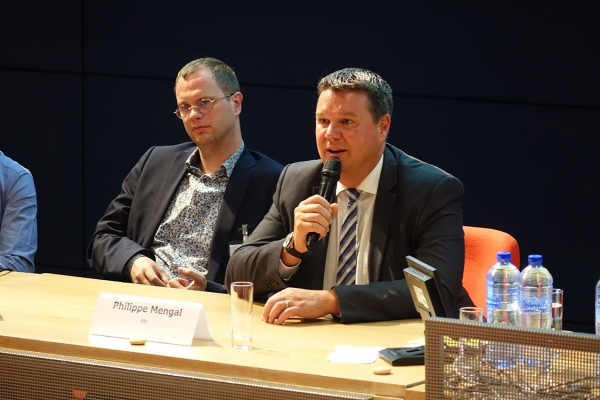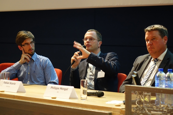 La tribune se composait de trois orateurs : Jonathan Guévorts (consultant ValBiom), Fabian Scuvie (conseiller R&D chez essenscia) et Philippe Mengal (Directeur exécutif du Bio-Based Industries Joint Undertaking - BBI JU).