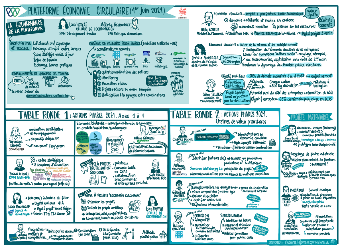En février 2021, la Wallonie s'est dotée d'une stratégie ambitieuse de déploiement de l'économie circulaire : Circular Wallonia. Afin d'échanger sur l'opérationnalisation des projets, une première réunion de la Plateforme Economie Circulaire a été organisée en juin pour présenter les actions prévues en 2021.