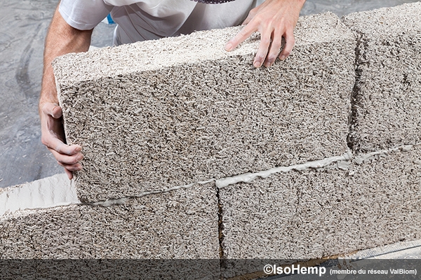En Wallonie, la société IsoHemp (membre ValBiom) a notamment développé un système constructif basé sur l’apport d’un côté porteur par une charpente structurelle en béton armée coulée dans des blocs dédiés : le système Hempro est constitué de deux types de blocs de chanvre de 30 ou de 36 cm d'épaisseur. Il s'agit de blocs pleins et de blocs usinés (blocs percés et blocs en U) disposés dans l'enveloppe de l'habitation, les blocs usinés serviront de coffrage perdu isolant à la charpente structurelle en béton armé qui y sera coulée.