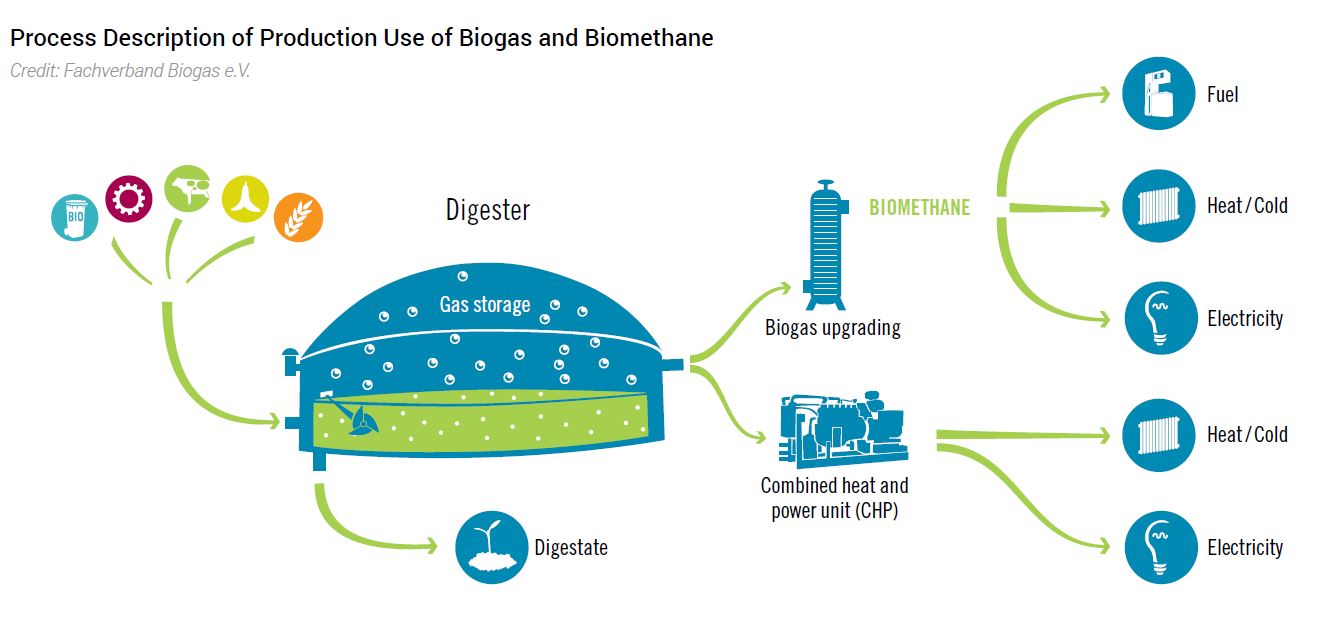 Pour rappel, le biométhane[1] est du biogaz épuré, produit par biométhanisation à partir de déchets d’origine animale, alimentaire et de biomasse. Ce biométhane peut être injecté dans les réseaux de gaz naturel ou être utilisé comme carburant pour le transport.