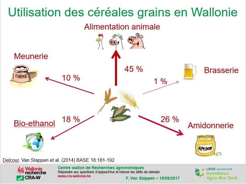 Van Stappen F, Delcour A, Gheysens S, Decruyenaere V, Stilmant D, Burny P, Rabier F, Louppe H & Goffart JP (2014). Etablissement de scenarios alternatifs de valorisations alimentaires et non alimentaires des ressources céréalières wallonnes à l’horizon 2030. Biotechnologie, Agronomie, Société et Environnement 18(2): 193-208 ;