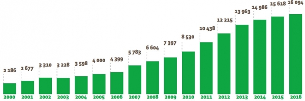 Selon le dernier baromètre EurObserv’ER, la croissance de la production d’énergie primaire biogaz entre 2015 et 2016 affiche +3%.