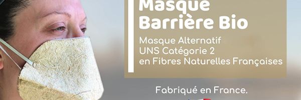 Des masques de protection composés d’une couche 100 % fibres de chanvre doublée d’un voile protecteur en amidon de maïs sont produits et mis en vente par la startup française Géochanvre F.