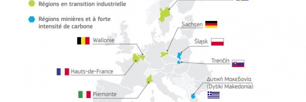 5 régions sélectionnées par la Commission pour bénéficier d’un soutien spécifique pour les aider à gérer leur transition vers une économie bas carbone.